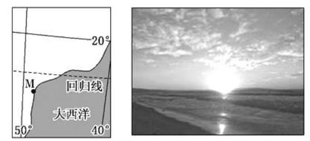 7、下图为春节在M地旅游的中国游客拍摄的海边风景照片。读图回答问题。