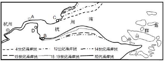 1、下图为我国东部沿海局部地区海岸线变动示意图。据此完成下列各题。