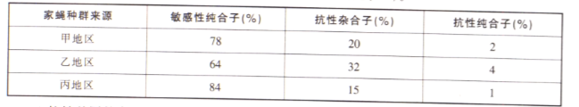2、蜜蜂对杀虫剂产生抗性,是基因中碱基序列改变所致。下列是对某市不同地区家蝇种群敏感性和抗性基因型频率的调查的结果。下列叙述正确的是()。