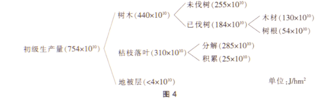 7、生态学家研究了一个人工森林,栽培后的十多年间的能量流动情况如图4所示,则()。