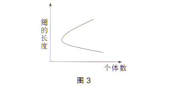 20、某经常刮大风的海岛上生活着一群昆虫,经调查翅的长度和个体数的关系如图3中曲线(纵坐标为翅的长度,横坐标为个体数)所示。下列叙述错误的是()。