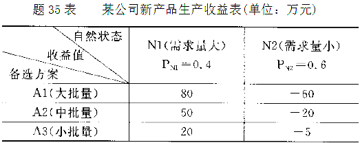 2、某公司拟对新产品生产批量作出决策,现有三种备选方案,未来市场对该产品的需求也有三种可能的自然状态,收益如题32表。