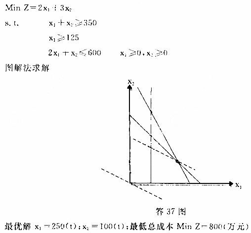 1、某公司产品生产需要A、B两种原料至少350吨,其中A原料至少购进125吨。加工每吨原料A需要2小时,加工每吨原料B需要1小时,而公司总共有600个加工时数;每吨原料A价格为2万元,每吨原料B价格为3万元,试求在满足生产需要前提下、在公司加工能力范围内,如何购买两种原料可使总成本最低建立该问题的线性规划数学模型并用图解法求出最优解