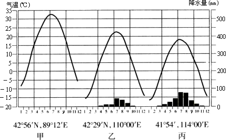 1、读我国甲、乙、丙三地的水热状况示意图,回答下列3题: