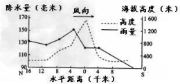 4、读“某山地南北坡降水量”图,回答下面3题: