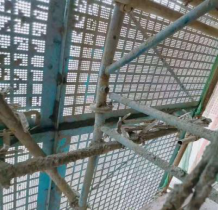 17、下图中关于转料平台搭设存在的安全隐患正确的说法是()。