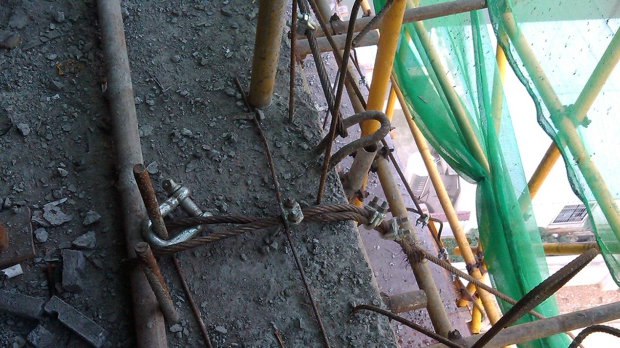 23、如图所示悬挑工字钢斜拉钢丝绳,描述正确的是?()