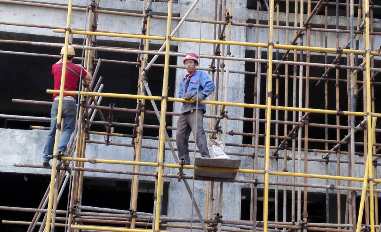 20、如图所示架体正在安装,说法正确的是()