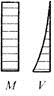 13、伸臂梁在图13所示荷载作用下,其弯矩M图和剪力V图可能的形状是()。