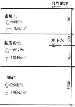 105、某民用建筑五层钢筋混凝土框架结构,无地下室,地方规范要求冻结深度为0.9m。地质土层剖面及土的工程特性指标如图48所示,下列基础的埋置深度何为最佳?()