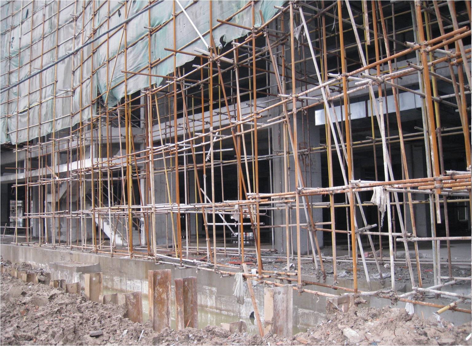 21、下图中关于施工作业层外脚手架存在的问题是()。