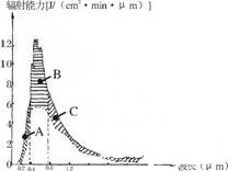 12、右图是近地面(虚线)和大气上界(实线)太阳辐射波长分布示意图。读图,回答下列2题: