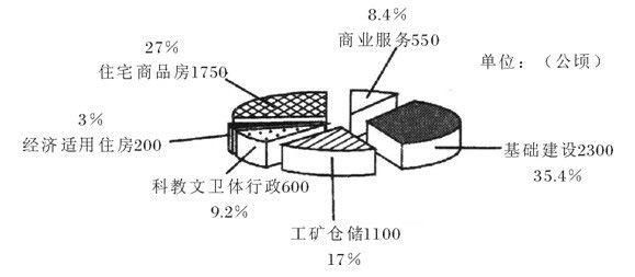 18、读“2005年北京市城市建设土地供应计划情况图”,回答下列2题: