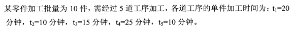 要求:(1)计算在顺序移动加工方式下,全部完成五道工序加工所需要的时间;(2)计算在平行移动加工方式下,全部完成五道工序加工所需要的时间;(3)说明平行移动加工方式的优缺点。