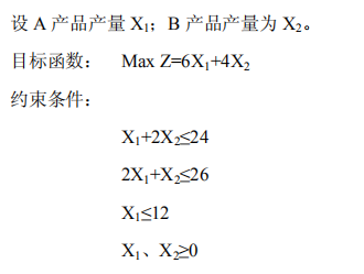 产品A的销售量上限为12个单位。产品A、B的单位产品利润分别为6元和4元。要求:编制利润额最大的分品种产品计划。(仅需建立线性规划模型)