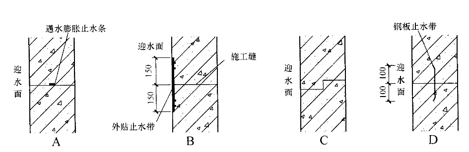 90、下列四种防水混凝土墙体水平施工缝的构造形式中,哪一种形式不宜提倡?