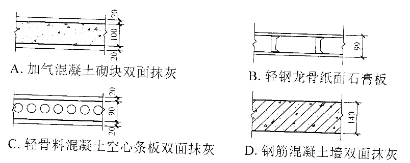6、当设计条件相同时,下列隔墙中,哪种耐火极限最低?