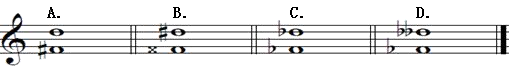 19、以E为上方音向下构成增二度音程,其下方音应是( )。