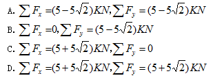 1、如图所示,平面力系由五个已知力组成,该力系在直角坐标轴上的投影之和应为()