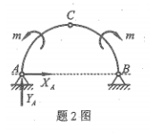 2、如图所示,三铰拱左右两支上分别作用一个力偶矩为m的力偶,则A支座的约束反力应为()