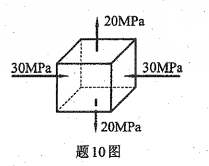 10、某点的应力状态如图所示,其最大切应力为()