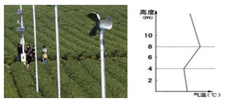 25、浙江省山地丘陵广布,适宜茶树的生长,但春季易受霜冻天气影响。为此,当地茶园 引进了“防霜冻风扇”(如左图)。当夜晚温度降到4℃时,风扇会自动打开,从而减轻 霜冻对茶树的伤害。右图“为茶园某时气温垂直分布示意图”。读图回答下面小题。