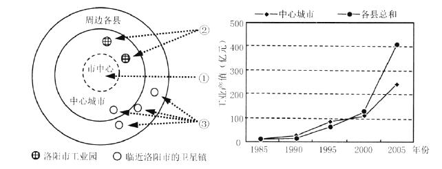 22、上世纪末,洛阳市域各县工业产值总和超过中心城市的原因最可能是( )。