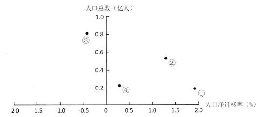 12、下图示意京、蜀、浙、新四个省级行政区2010年常住人口总数及2005-2010年人口净 迁移率(人口净迁移率=人口迁入率一人口迁出率)。据此完成下面小题。