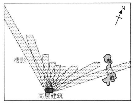 30、图中楼影遮挡湖泊时,北京时间可能是( )。