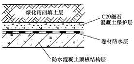 B.防水层为40mm厚C20细石混凝土,内配双向φ4钢筋网片,间距150mm,分格缝间距小于6m