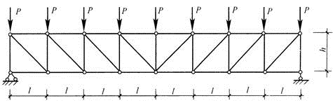 85、图所示对称桥梁在外力P作用下零杆的数量为()。