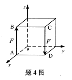 4、如图所示,边长为a的正方体的棱边AB和CD上作用着大小均为F的两个方向相反的力,则二力对x、y、z三轴之矩大小为()