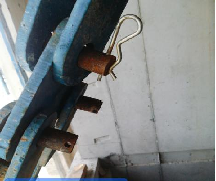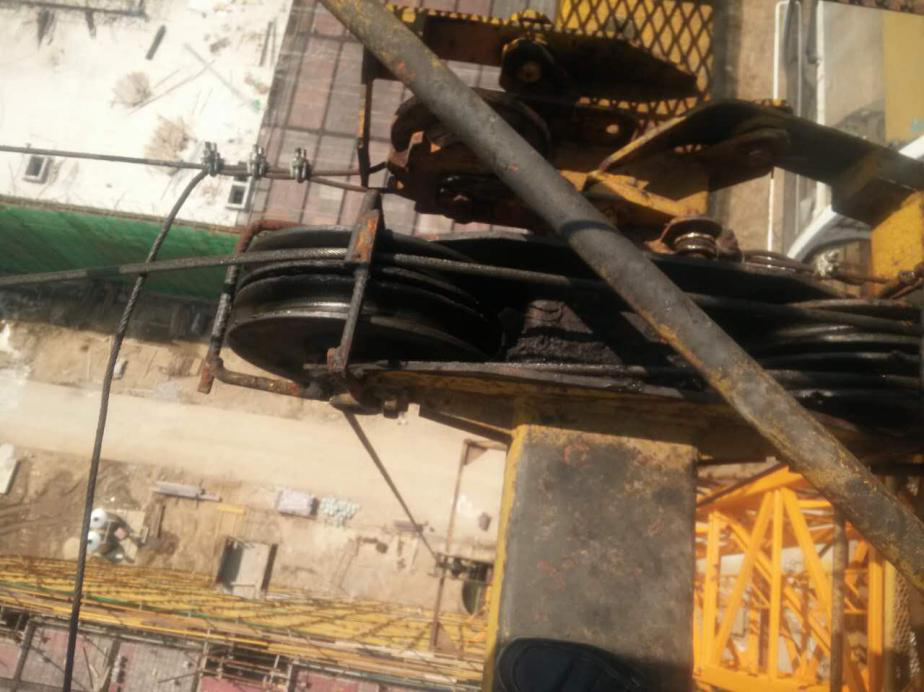 21、某建筑工地塔吊作业时,发现吊钩运行不正常,吊重物有摇晃摆动现象,检查发现如图所示故障,该故障是()。