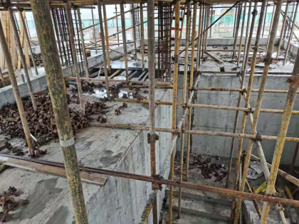24、如图某项目使用的钢管式附着式升降脚手架,存在的隐患是()