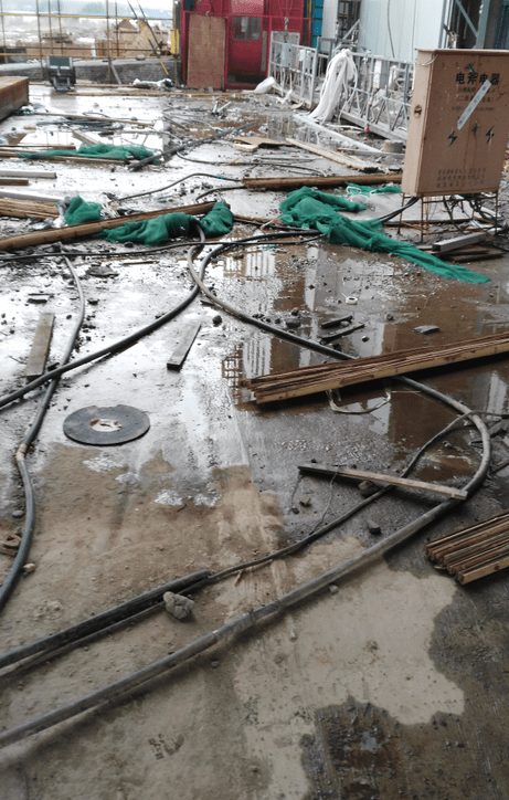D.电缆线随意拖地,缠绕在钢筋上,存在触电风险