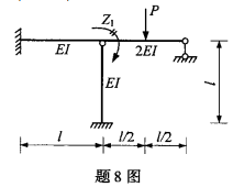 8、图示结构,位移法基本方程为r11Z1+R1P=0,其中r11等于( )