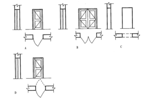 11、下图所示门图例中,( )表示单扇双面弹簧门。