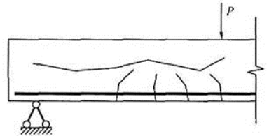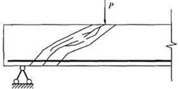 89、图示混凝土梁的斜截面破坏形态,属于斜压破坏的是( )。